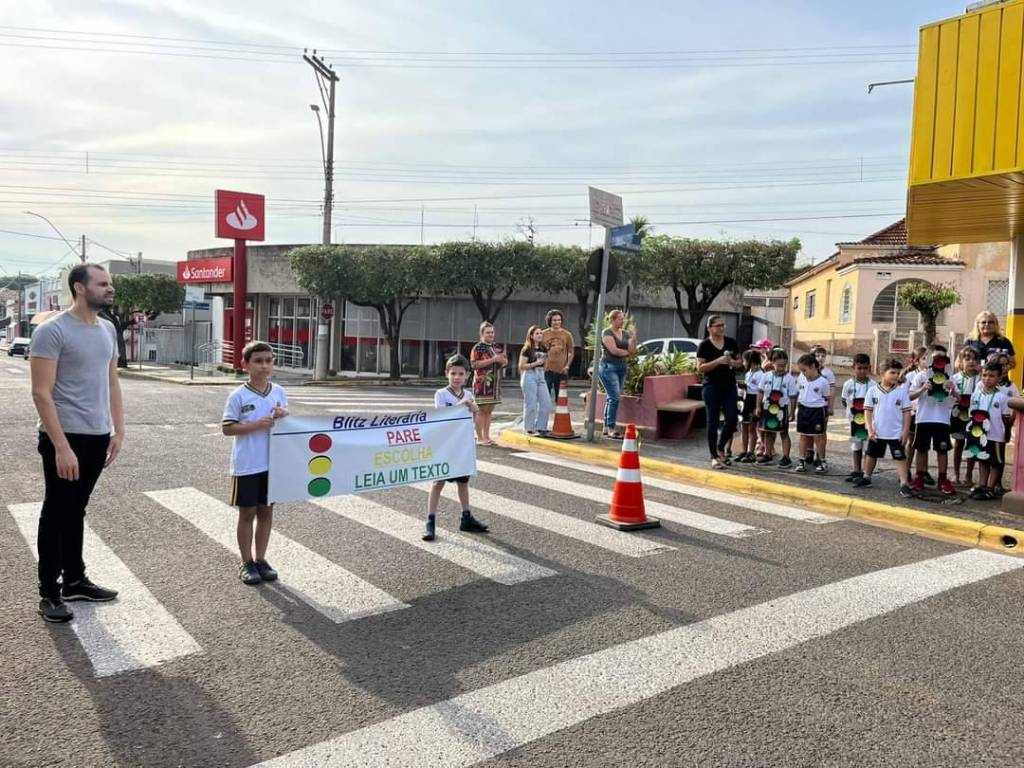 Em homenagem a semana da Língua Portuguesa, os alunos da escola Rubi Gimenes enfatizaram através dos motoristas na blitz a importância da leitura através de poemas.