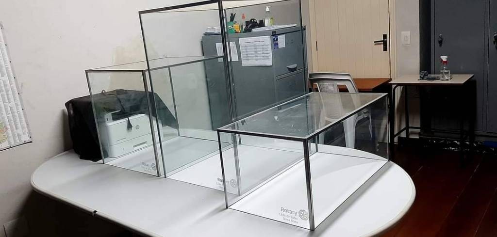 Esta doação foi feita pelo Rotary Club de Jahu - Terra Roxa. Trata-se de um projeto distrital, onde, além dos expositores, também foi entregue o painel que fica exposto na entrada.