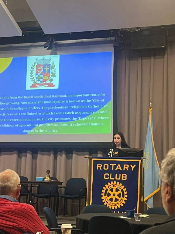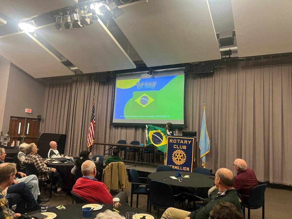 Roberta Camargo, intercambista da cidade de Lins, realizou sua apresentação no Rotary de Vermilion nos EUA. A apresentação é uma tradição, que permite aos associados do país de destino conhecer um pouco mais sobre a cultura e curiosidades do país de origem. Além de apresentar a evolução no domínio do idioma, a apresentação permite que gere empatia e interesse no país, muitas vezes, abrindo oportunidade para projetos entre os clubes de diferentes nações.