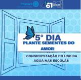 | Texto alternativo:: Arte com cor principal o azul, ao centro escrito "5° DIA - PLANTE SEMENTES DO AMOR". Em cima de tudo, as logos do Interact Club de Promissão e da SMI, ambas em cores.