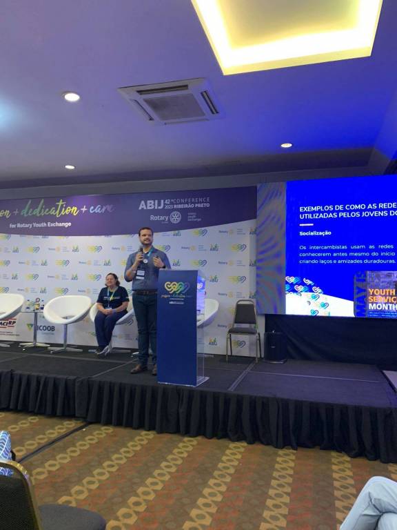 Minha apresentação na ABIJ 2023 com o tema A importância das redes sociais do intercambio em seus respectivos distritos.