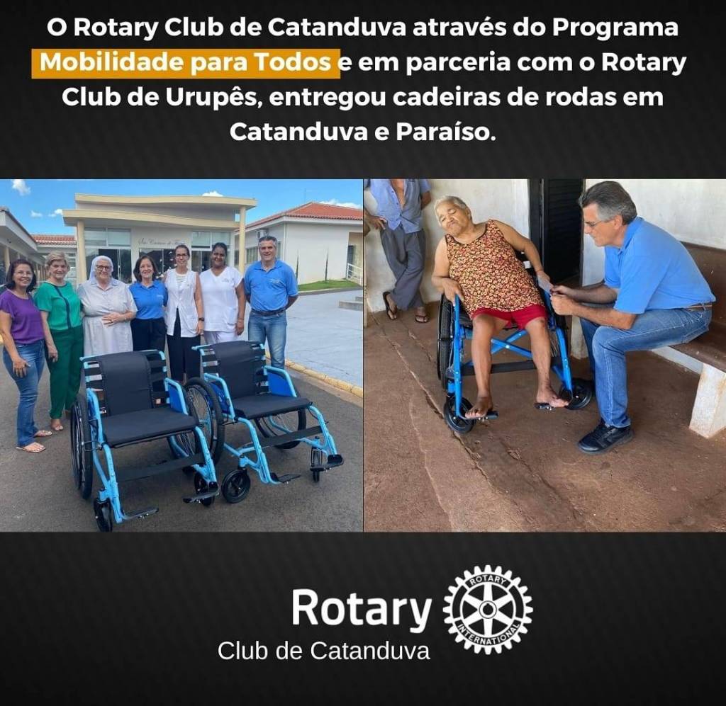 O Rotary Club de Catanduva, através do programa "Mobilidade para Todos", em parceria com o Rotary Club de Urupês, entregaram cadeiras de rodas em Catanduva e em Paraíso.