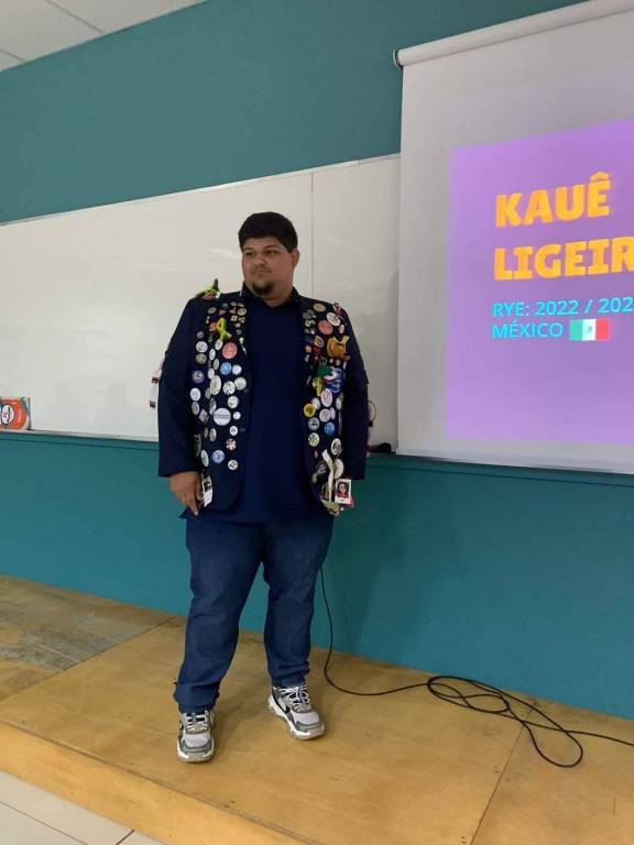 Tivemos apresentações dos nossos intercambistas de anos anteriores, começando com nosso querido Kauê, relatando sobre sua experiência no México, seguido pelo jovem Pedro, que também esteve no México, após, foi a apresentação do Lucas Lisse, passando sua experiência na Alemanha. Marcus nos apresentou como foi seu intercâmbio durante a pandemia no Peru e finalizando com Lukas sobre a experiência de intercâmbio na Índia.