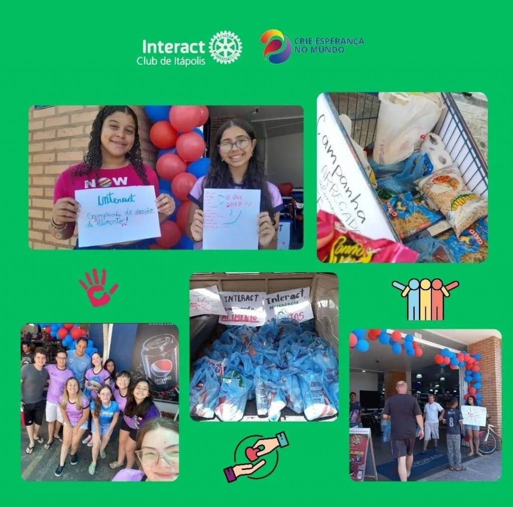 Temos a honra de apresentar a vocês um projeto sensacional feito pelo interact Club de Itápolis, nele os integrantes do clube foram nas portas de super mercados pedindo a doação de alimentos não perecíveis para a montagem de cestas básicas.
