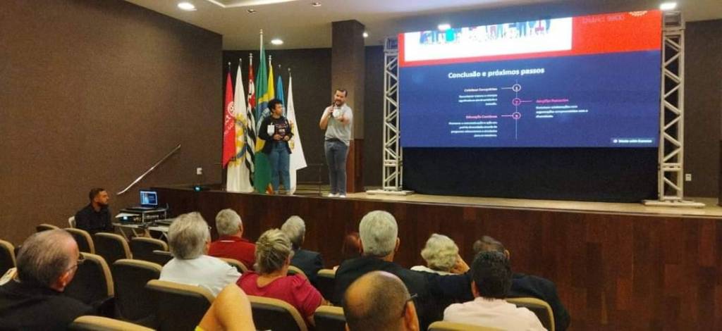 Rodrigo também é líder distrital no programa de Diversidade, Equidade e Inclusão (DEI), nas fotos, ele divide o palco com Tainá Rainho do Rotary e Rotaract Clubs de Olímpia Integração (dupla afiliação), que também representa o DEI, além de assumir o cargo de Representante Distrital do Rotaract (RDR) na gestão 2024-25.