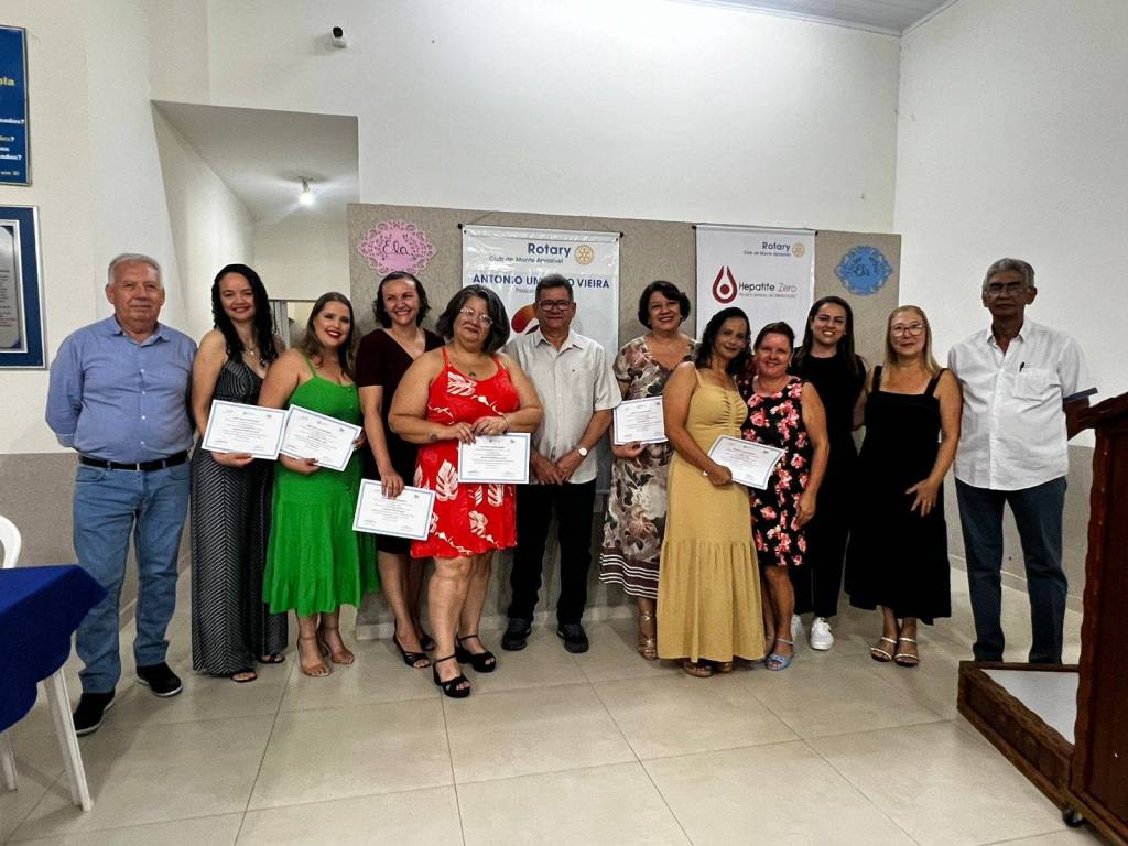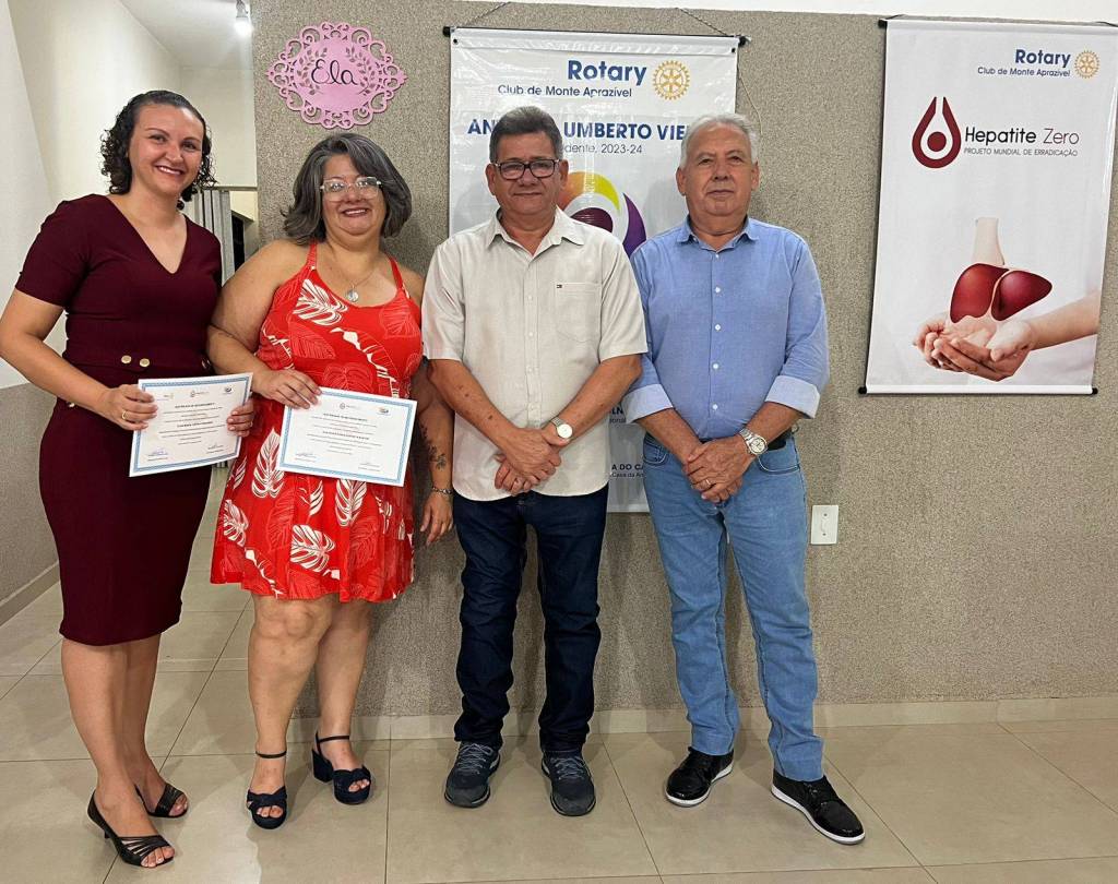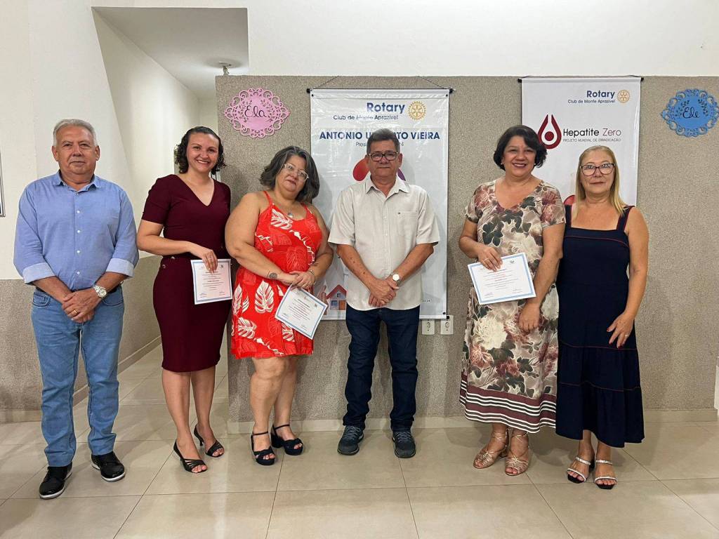 Finalizando a campanha "Hepatite Zero" do Rotary Club de Monte Aprazível, a Assessora da Saúde Élida, demais profissionais da área da saúde do município e o Presidente da Câmara Municipal - Marcos, recebem uma homenagem pela parceria. As metas foram atingidas com sucesso.