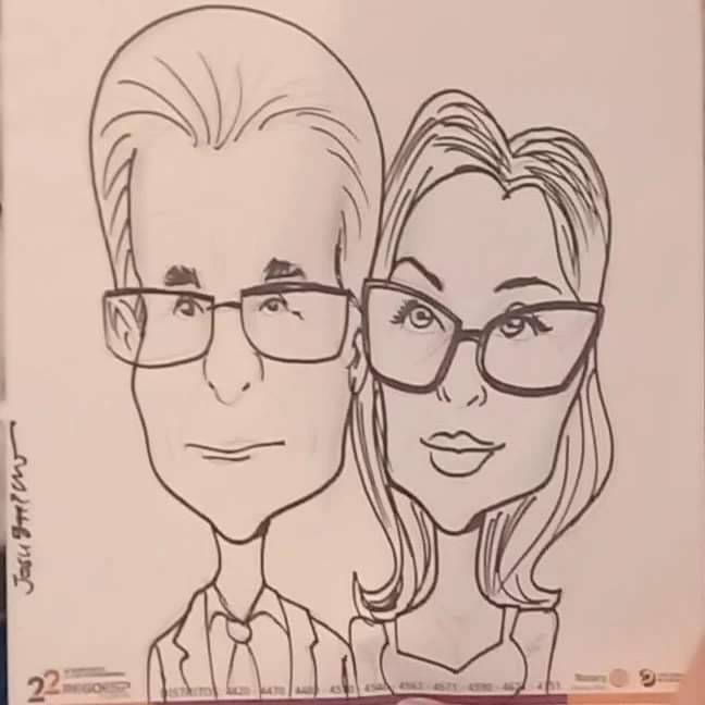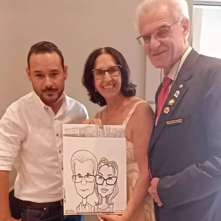 Govs. Pavam e Cavichia tiveram a oportunidade de encontrar o Diretor do Rotary International no Brasil Henrique Vasconcelos e o Diretor Eleito César Scherer e no mesmo dia, Pavam e sua esposa Rita foram brindados pelo cartunista Josué Barroso, que fez uma bela arte do nosso casal.