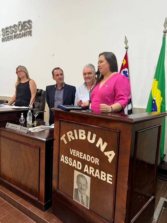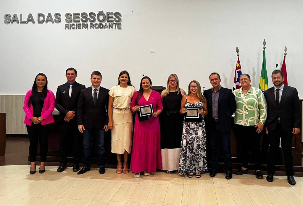Na noite do dia 25 de março, o Rotary Club de José Bonifácio foi homenageado na Câmara Municipal da cidade através das Rotarianas: Alexandra (Pres 2023/2024) e companheira Marlene. Ambas recebem da Presidente da Câmara, Fabiana, uma placa de homenagem e, em seguida, fizeram uso da tribuna.