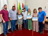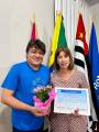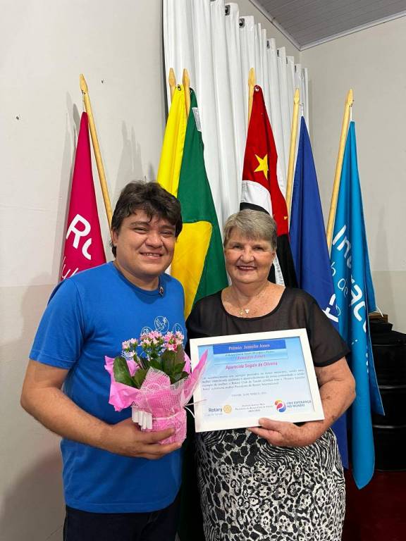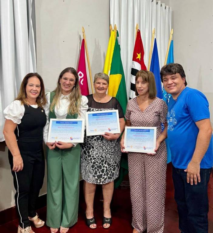 Todas recebem do Presidente do Rotary Club de Tanabi, Florindo Galvani, um certificado e uma flor.