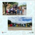Audiodescrição: Foto de um grupo de pessoas, alguns com tiara de orelhas de coelho da Páscoa. Estão ao ar livre em local gramado e com árvores. A moldura é azul clara com desenho de ovos de páscoa. Com o logo Crie Esperança no Mundo abaixo a esquerda e do Rotary Club de José Bonifácio a direita.