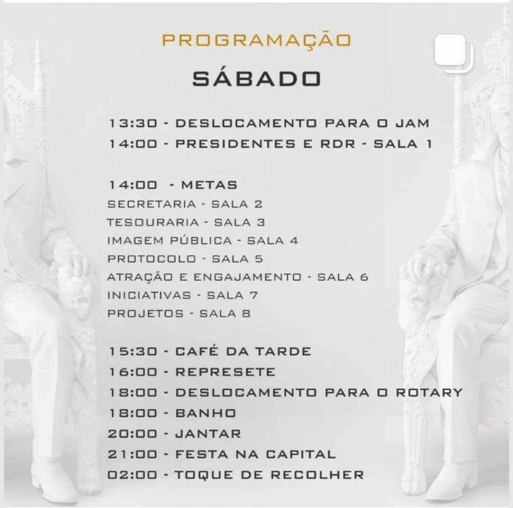 Audiodescrição: no card, de fundo claro e imagem de fundo de um senhor sentado em um trono, veste terno, em cada lado do trono uma pessoa, lado direito uma jovem e lado esquerdo um rapaz, de vestes que lembram reinado. No centro do card, agora com letra em destaque ADIRC Jogos Vorazes Programação. No rodapé, simbolos e nomes Rotaract Distrito 4480 e Rotaract Club de José Bonifácio.