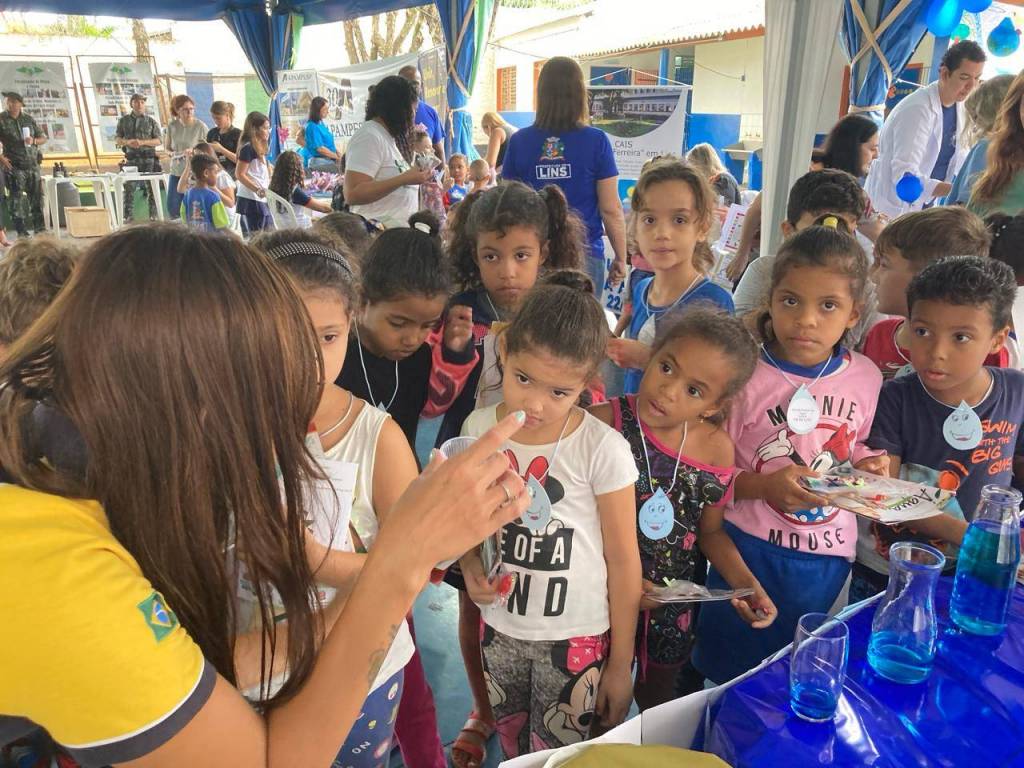 Encerrando as celebrações do Dia Mundial da Água, o Rotary Club Lins - Norte marcou presença no Edifício Paulo Magalhães, onde montou um estande para esclarecer dúvidas e compartilhar informações valiosas com crianças e adolescentes.