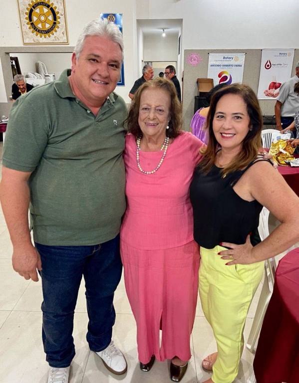 Ao fundo aparece um banner do Rotary Club de Monte Aprazível.