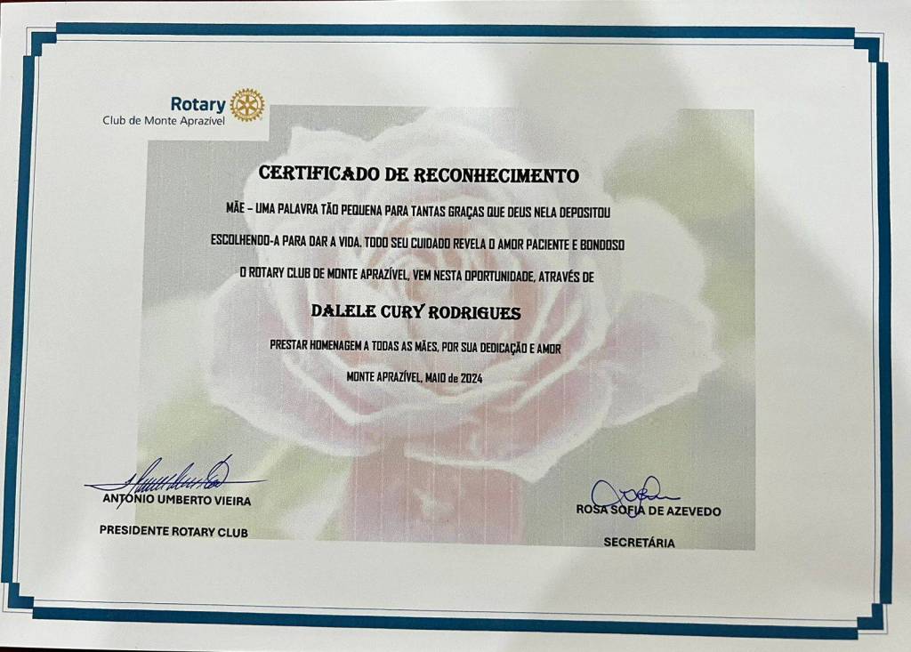 Segunda feira, 06 de maio foi Noite de Homenagens no Rotary Club de Monte Aprazível.