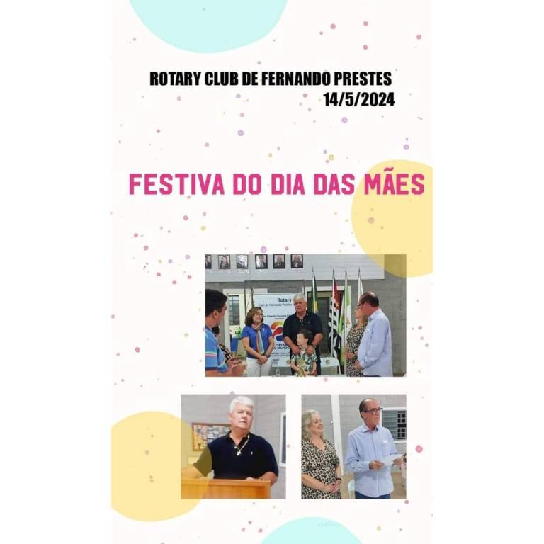 Na noite de 14 de maio de 2024, na sede do RC de Fernando Prestes, realizou-se a comemoração em homenagens às mães e aos aniversariantes do primeiro semestre de 2024.