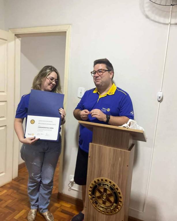 37ª Reunião Ordinária. Posse do sócio honorário Marcelo Oliveira e outorga de título Paul Harris para a companheira Bruna Carra.