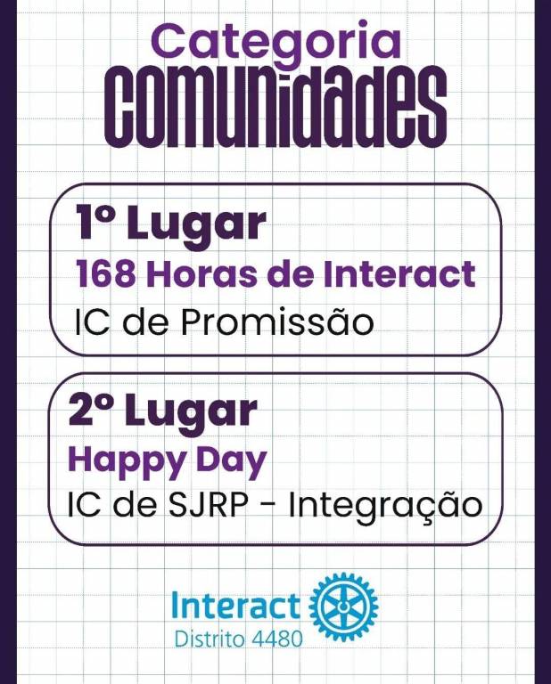 Terminando o card no centro abaixo temos o símbolo do Interact Distrito 4480 em branco.