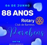 É com muita alegria que comemoramos 88 anos de existência! Foram muitos anos de luta, determinação e firmeza de propósito, com o objetivo de servir o próximo, servir a comunidade, tornar o mundo melhor! Muito amor em cada ação, campanha e projeto desenvolvidos. Gratidão a todos os ex rotarianos que de alguma forma deram seu tempo e trabalho ao Rotary Clube de Barretos. Gratidão a cada um dos companheiros que abrilhantam este clube de serviços para fazer o bem! Parabéns!