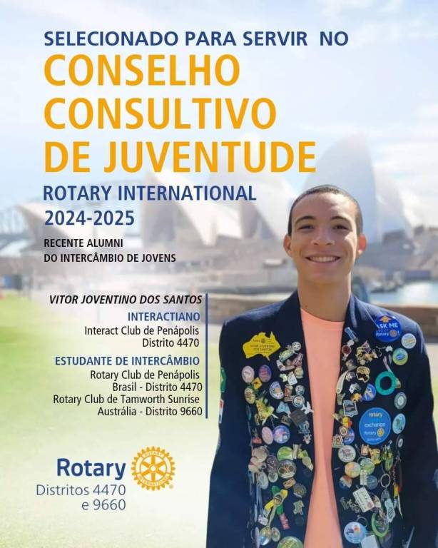 Jovem Vitor Joventino, intercambista e interactiano do distrito 4470 do Rotary, foi selecionado para servir ao Conselho Consultivo de Juventude do Rotary International em 2024-25 (Youth Advisory Council).