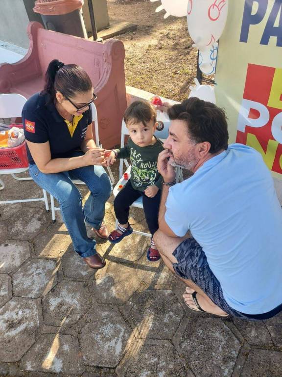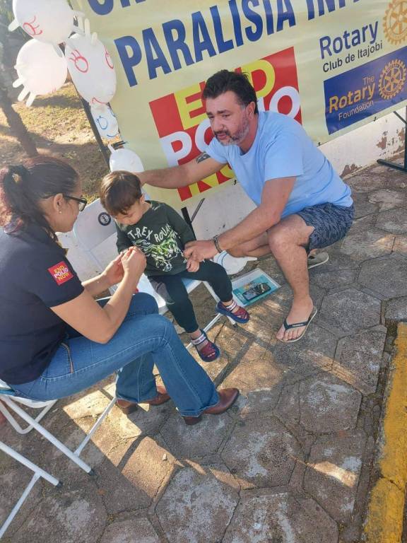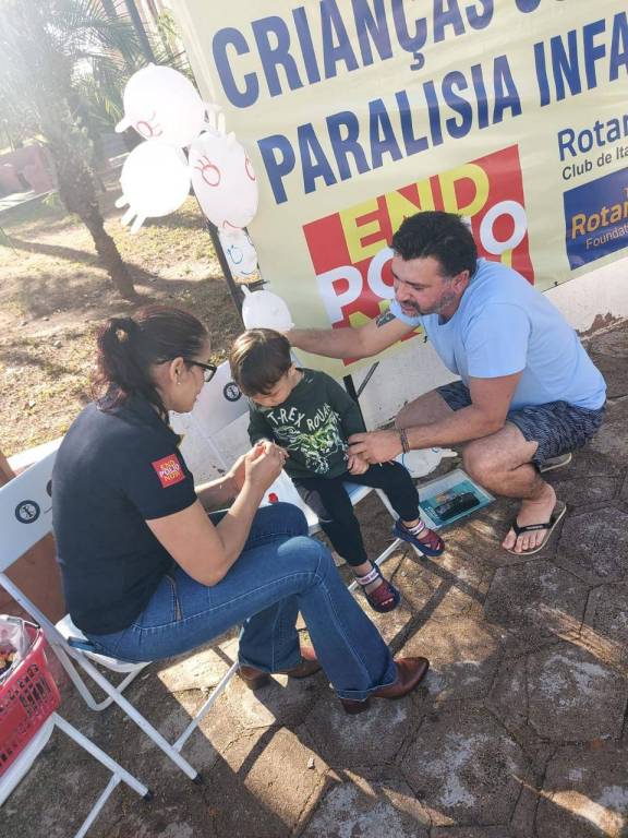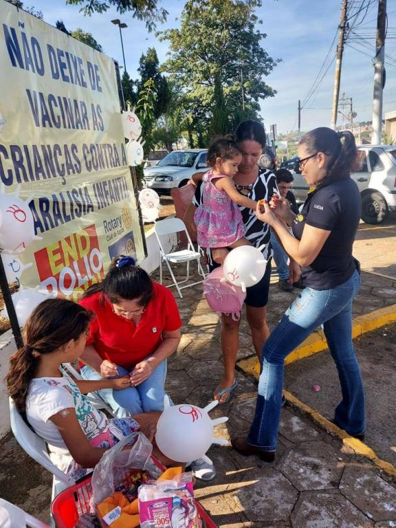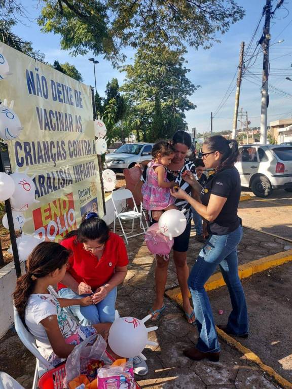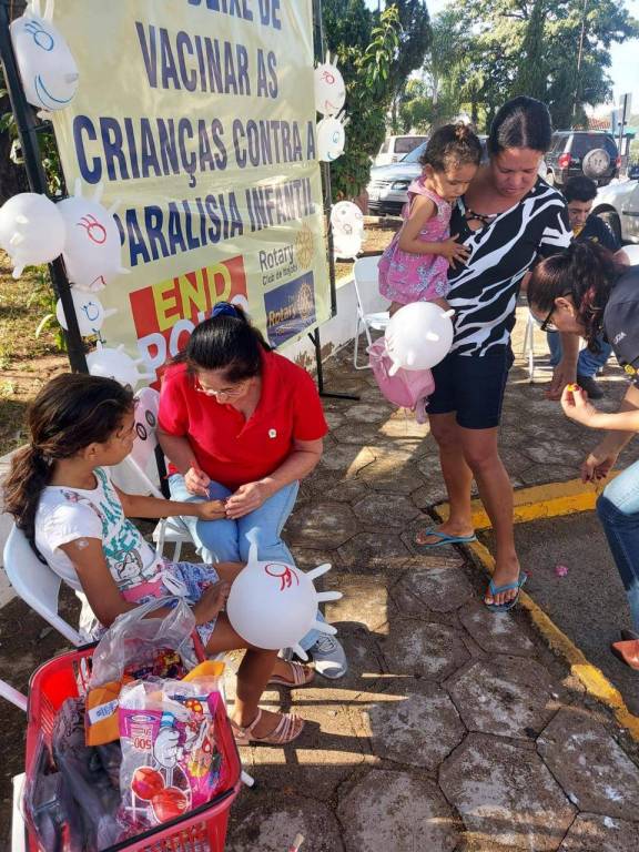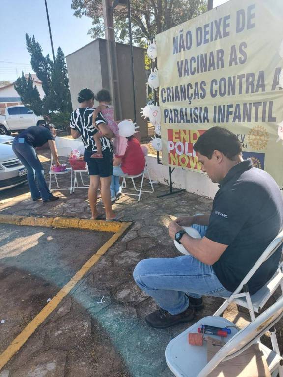 O Rotary Club de Itajobi esteve na frente do posto de vacinação. Os associados realizaram pintura nas crianças e deram bexiga nesse dia 8 de junho contra a pólio!