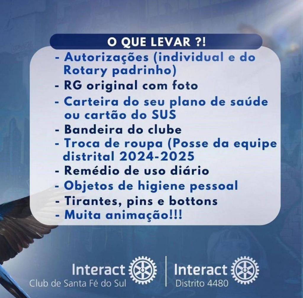 Na parte inferior central na cor branca o logo do Interact Club de Santa Fé do Sul e do Interact Club distrito 4480.