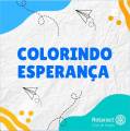 Audiodescrição: Card com fundo branco simulando papel amaçado, onde é possível ler no centro na cor azul os dizeres "Colorindo Esperança". O canto superior esquerdo possui uma arte ondulada com a cor azul e o mesmo tipo de arte, no canto inferior direito, porém, com um tom de azul mais claro, onde está o logo em branco do Rotaract Club de Tanabi. No restante da imagem há linhas pontilhadas circulares, indicando movimento, sendo possível ver o desenho de 2 aviões de papel na arte. Os cantos superior direito e inferior esquerdo possuem elementos gráficos em amarelo.
