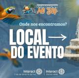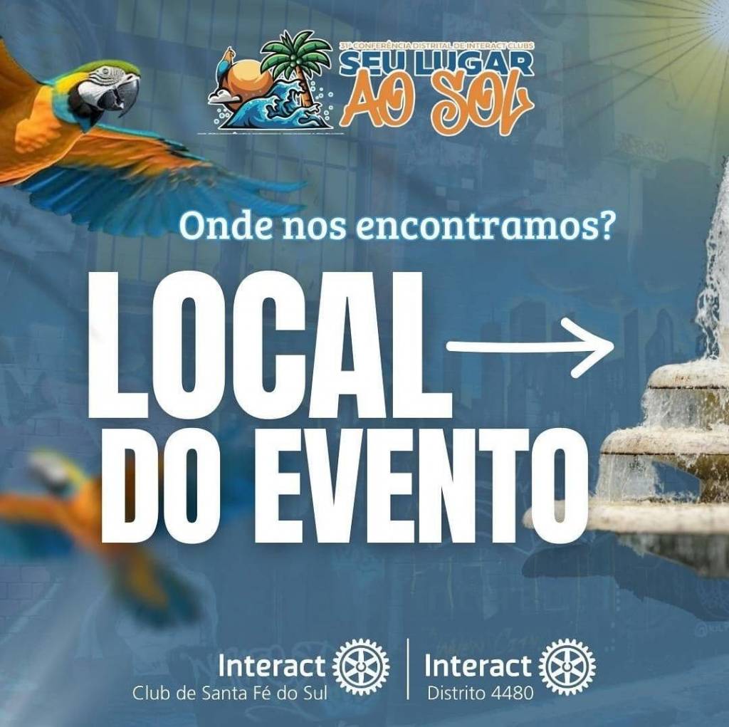 Parte central inferior lado esquerdo o logo em branco do Interact Club de Santa Fé do Sul e logo Interact Club Distrito 4480.
