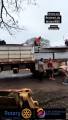 Na foto observamos 5 homens jovens descarregando o que parece ser telhas brancas de zinco de um caminhão carreta que está bastante carregada, sendo que 2 deles estão em cima da mesma e outros 3 aguardam no chão. O dia está nublado e podemos observar que o chão está molhado. Existem árvores no entorno do local. No canto inferior esquerdo existe parte de um material que não deciframos em amarelo.