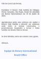 - A carta é finalizada com uma despedida informal "Abraços," seguida pela identificação do remetente, que é a equipe do escritório brasileiro do Rotary International.