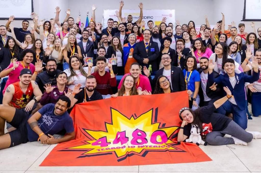 O banner exibe de forma proeminente o logo e a marca da organização Rotary. Nele está escrito: