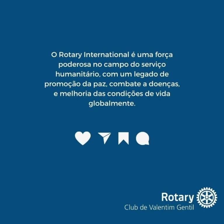 - Na parte inferior direita, está o logotipo do Rotary (uma roda dentada amarela) ao lado das palavras "Rotary Club de Valentim Gentil".