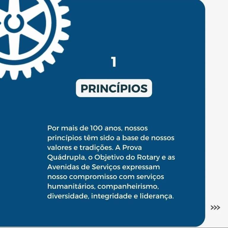O design utiliza tons de azul e branco, com uma estética limpa e organizada, destacando as ações e os valores do Rotary Club.