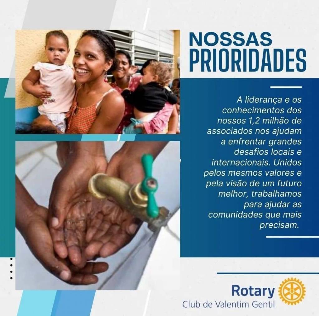 Audiodescrição: A imagem é um banner promocional do Rotary Club de Valentim Gentil. O banner é dividido em duas seções principais, com imagens à esquerda e texto à direita.