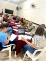 Aparenta ser um ambiente fechado de reunião. Onde existe conversas entre todos.