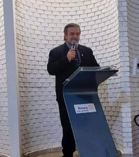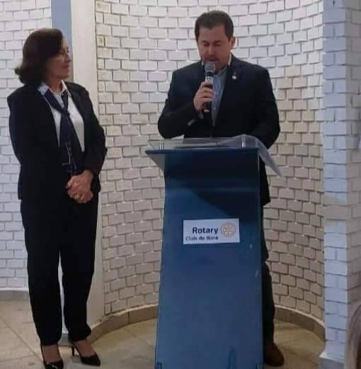 Ao fundo três banners, sendo do Rotary Club de Urupês, outro do Rotary Club de Ibirá e outro da empresa cidadã.