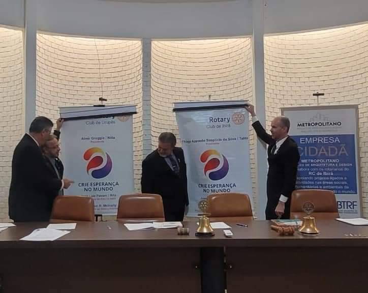 Durante a cerimônia o Pres. do Rotary Club de Ibirá, Thiago Azevedo Simplicio da Silva transmitiu oficialmente o cargo para o novo Pres. Cleber Macedo e o Pres. do Rotary Club de Urupês Almir Groggia, transmitiu oficialmente o cargo para o novo Pres. José Maio, que deram posse aos seus Conselhos Diretores e apresentaram o novo Lema Rotário para o ano 2024/2025 "A MAGIA DO ROTARY".