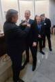 Quatro homens, todos de terno preto, gravatas, sorrindo.