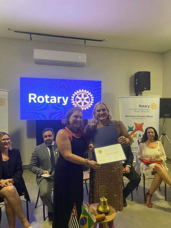 Uma noite memorável. Assim podemos classificar a transmissão de cargo de Pres. e a posse das novas diretorias dos Rotary Clubs de Votuporanga Novas Gerações e Votuporanga Novo Milênio. Sob os comandos de Aila Nicoletti (RC Vot. Novas Gerações) e Éberton Guimarães (RC Vot.Novo Milênio) esse ano rotário será para difundir a “Magia do Rotary”.Muitos agradecimentos, muito comprometimento, muita dedicação às causas rotárias e principalmente muita emoção tomou conta de todos que ali estavam. Um momento especial ficará guardado no coração de nossa comp. Pres. Aila, pois foi surpreendida com um Título Paul Harris presenteado por sua irmã também rotariana Albaiza Nicoletti Otterço. Após o ato protocolar um coquetel foi servido ao som de uma banda ao vivo que animou a todos que ali estavam. É o Rotary proporcionando a todos momentos “mágicos” de companheirismo.