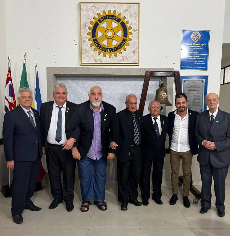 Ao fundo placas do Rotary.