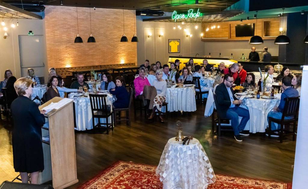 Um dos momentos marcantes da noite foi a posse da nova associada, a empresária Alessandra Nobalbos, que foi calorosamente acolhida pelo clube. O evento contou com a presença do casal governador do Distrito 4480, Éder e Nelly Bocchini, que prestigiaram a cerimônia e reforçaram o apoio ao novo presidente e sua equipe.