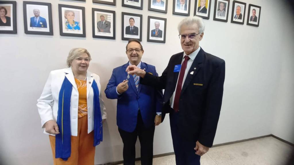 Nesta segunda-feira o Governador 2023-24 José Luiz Pavam e esposa Rita de Cássia entregaram o relatório financeiro e as chaves do Escritório da Governadoria ao Governador 2024-25 Eder Bocchini e Nelly.