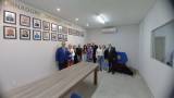 Em um ambiente fechado, ao fundo a galeria de fotos de Gov. Do distrito quatro mil, quatrocentos e oitenta.