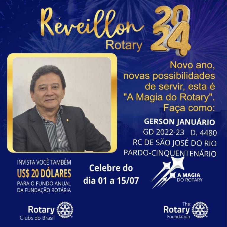 Dia 15/07 foi o último dia de Celebrar o Réveillon do Rotary investindo e fortalecendo o Fundo Anual da Fundação Rotária.