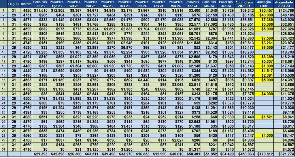 O Distrito 4480 arrecadou em 2023-24 US$ 17.1433, o que equivale a mais de R$89 mil Reais.