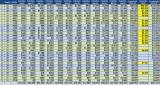 Imagem de uma planilha informando os resultados da arrecadação em cada mês de todos os distritos do Brasil.